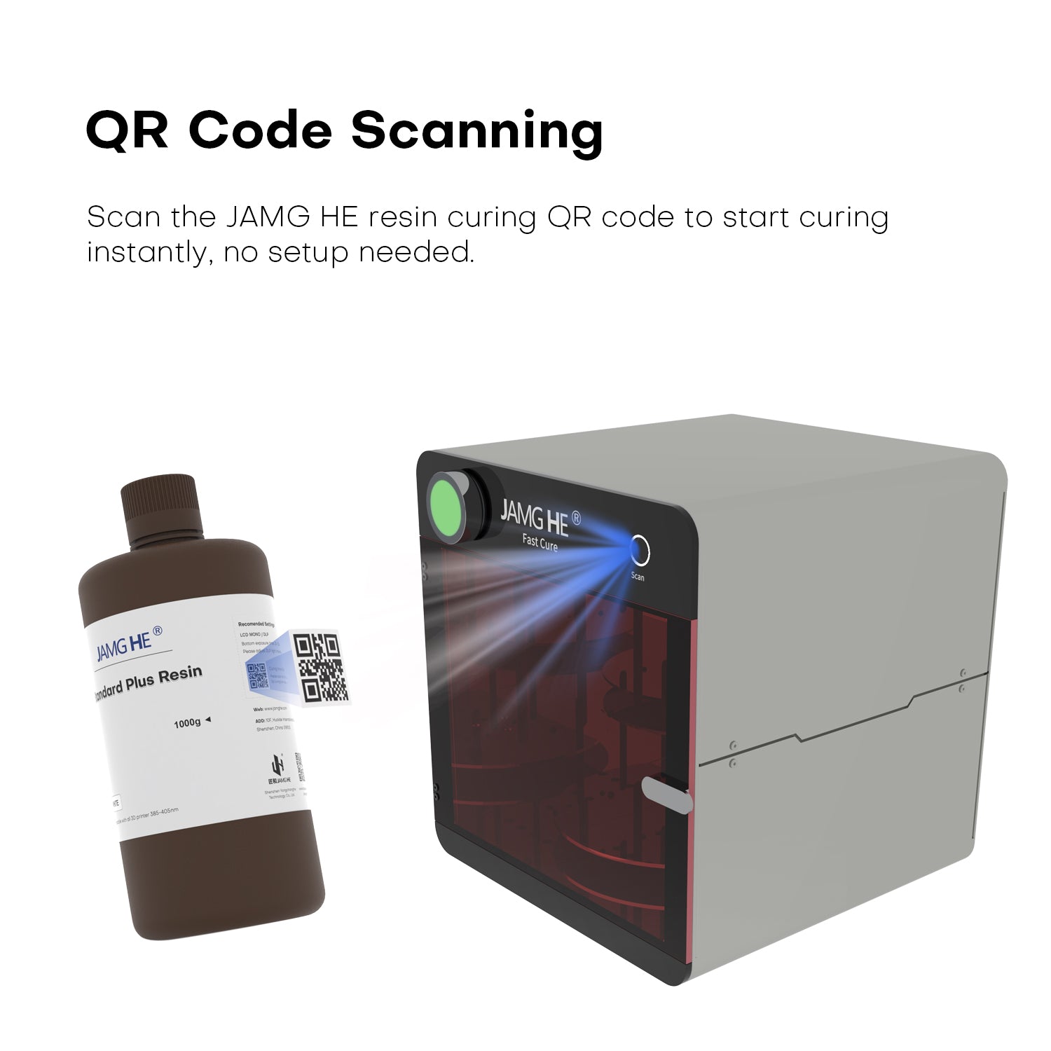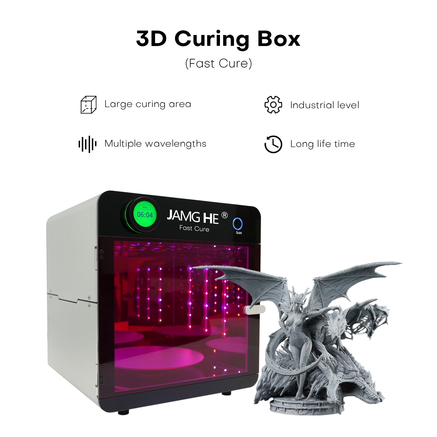 JAMG HE Fast Cure 3D Printing Resin Curing Box - Industrial Grade with QR Code Scan & Large Area