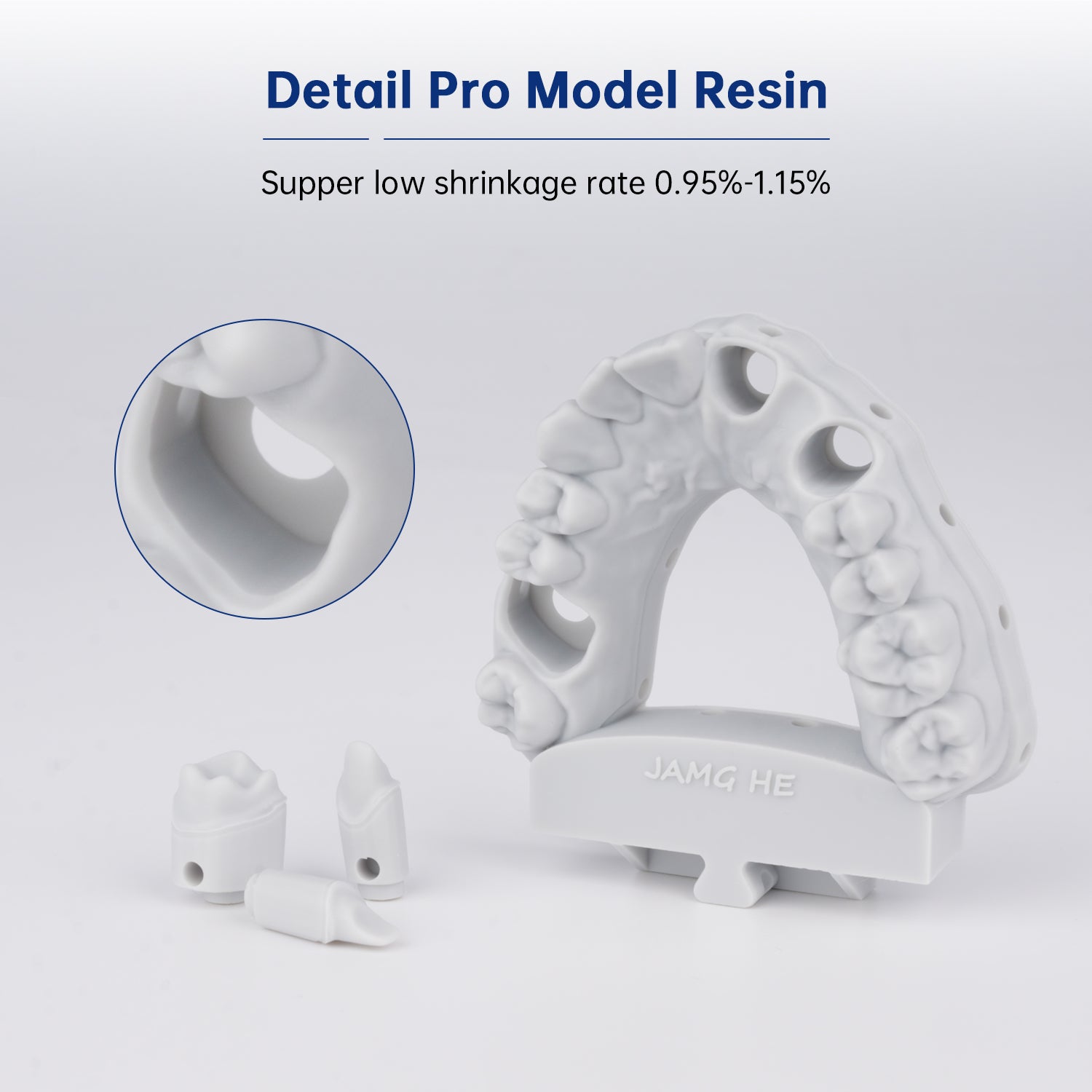 JAMG HE Dental resins are the lowest shrinkage among all the 3d resin molds.