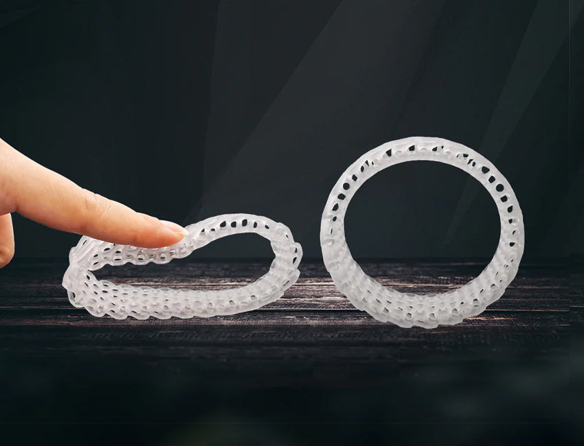 Flexible 3d printer resin has soft property allows to bend or compress the prints, if you need high elongation property, please see our elastic resin.